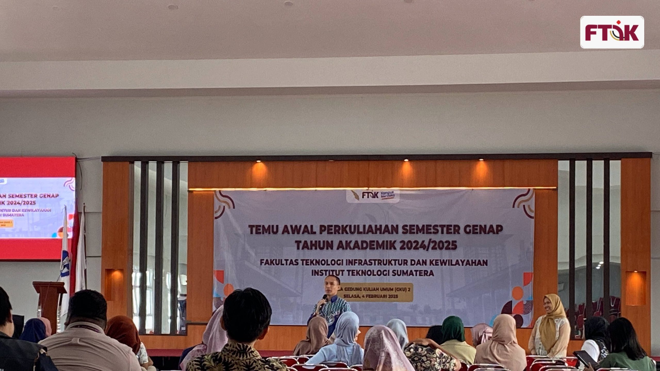 Fakultas Teknologi Infrastruktur dan Kewilayahan Institut Teknologi Sumatera (FTIK ITERA) mengadakan Temu Awal Perkuliahan Semester Genap Tahun Akademik 2024/2025 (4/2/2025). Acara yang berlangsung di Aula GKU 2 ITERA ini merupakan agenda rutin yang dilaksanakan setiap semester untuk mengawali perkuliahan di lingkungan FTIK. Kegiatan ini dibuka oleh Wakil Rektor Bidang Akademik dan Kemahasiswaan, Prof. Dr. Eng. Khairurrijal M.Si.Â