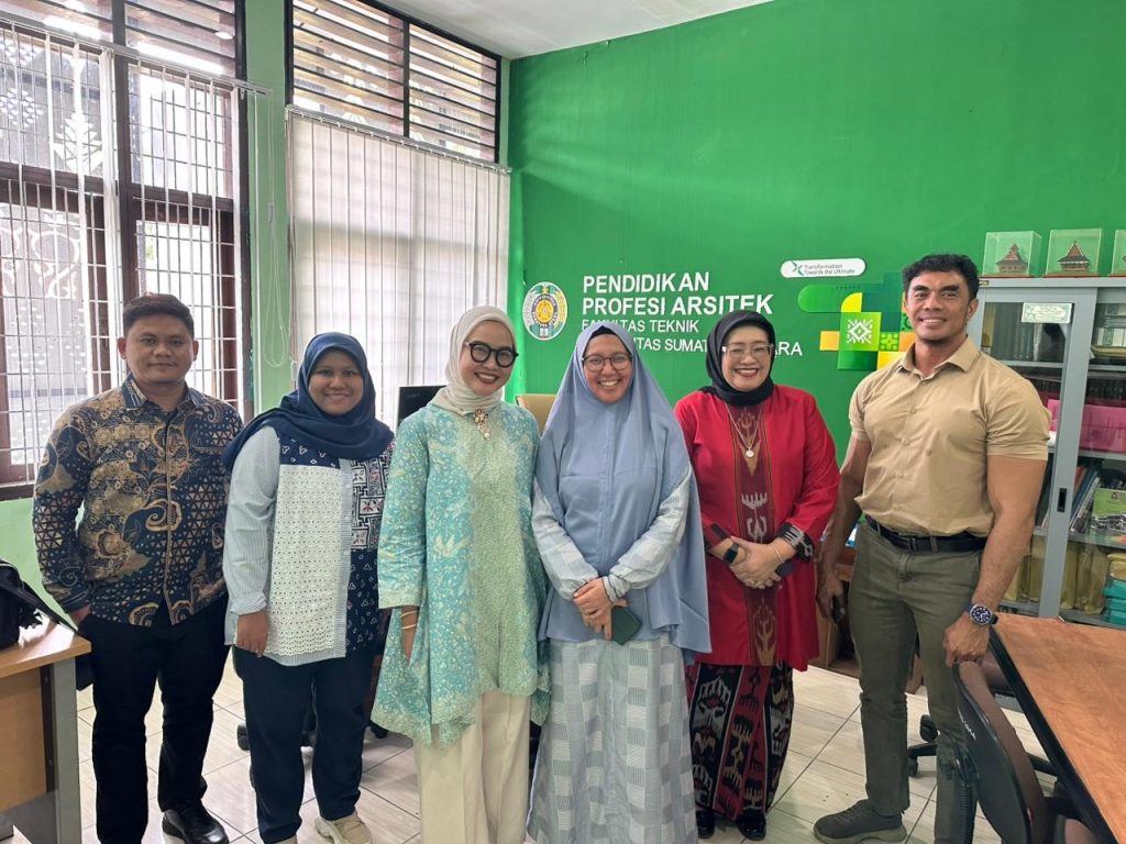 Kunjungan ke Fakultas Teknik Universitas Sumatera Utara (USU) dilaksanakan oleh tim dosen yaitu Ina Winiastuti Hutriani, S.P., M.Ars.L. (Koordinator Pengembangan Perencanaan FTIK), Ir. Jamaludin, S.T., M.Sc. (Koordinator Kerja Sama FTIK), dan Dr. nat. techn. Shahnaz Nabila Fuady, S.T., M.T. (Koordinator Program Studi Perencanaan Wilayah dan Kota). Dalam kunjungan ini, hadir Bapak Prof. Dr. Ir. Fahmi, S.T., M.Sc., IPU (Dekan Fakultas Teknik USU), Dr. M. Ridwan Anas, S.T., M.T. (Ketua Program Studi Teknik Sipil), Dr. Ir. Dwira Nirfalini Aulia, M.Sc. (Ketua Program Studi Arsitektur), Prof. Ar. Ir. Nurlisa Ginting, M.Sc., Ph.D., IAI. (Ketua Program Studi Perencanaan Wilayah dan Kota), serta para dosen Perencanaan Wilayah dan Kota USU. Kunjungan ini menghasilkan rencana kolaborasi Tridharma Perguruan Tinggi seperti kuliah tamu, kolaborasi kurikulum dan joint studio Perencanaan Wilayah dan Kota, pertukaran penguji tugas akhir dan kolaborasi pembimbingan mahasiswa, pengembangan modul pembelajaran bersama, penelitian dan publikasi program kolaboratif pemulihan wilayah terdampak bencana, pelaksanaan PKM lintas program studi dengan fokus kawasan rentan dan daerah prioritas pembangunan di Sumatera.