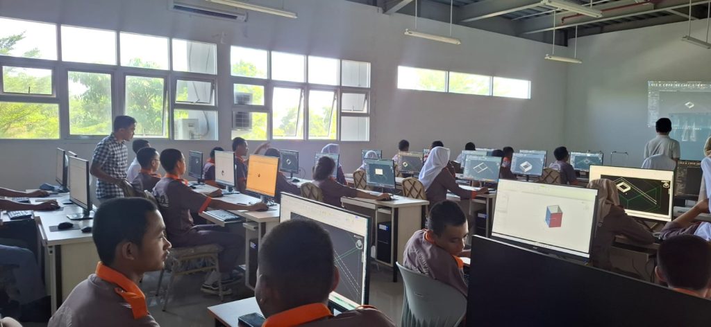 Dengan dukungan laboratorium multimedia dan fasilitas komputer di Gedung Laboratorium Teknik 3, tim dosen membimbing siswa/i dalam memahami tampilan Revit dan workflow dasar pemodelan arsitektur.