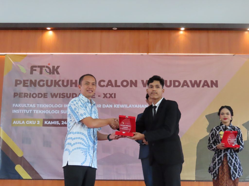 Selain sesi berbagi ilmu, acara ini juga menjadi momen berharga bagi para calon wisudawan. Tiga mahasiswa terbaik diumumkan dan diberi penghargaan atas pencapaian akademiknya, serta pembagian sertifikat kelulusan untuk seluruh calon wisudawan di lingkungan fakultas teknologi infrastruktur dan kewilayahan Itera.
